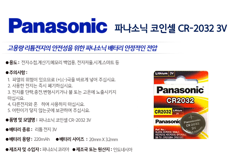 ÆÄ³ª¼Ò´Ð CR2032 ¸®Æ¬ÀüÁö/¼öÀºÀüÁö [5¾Ë]